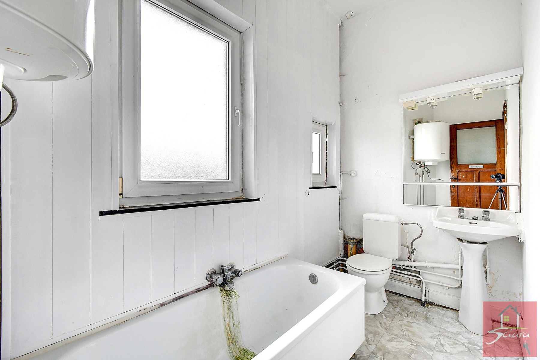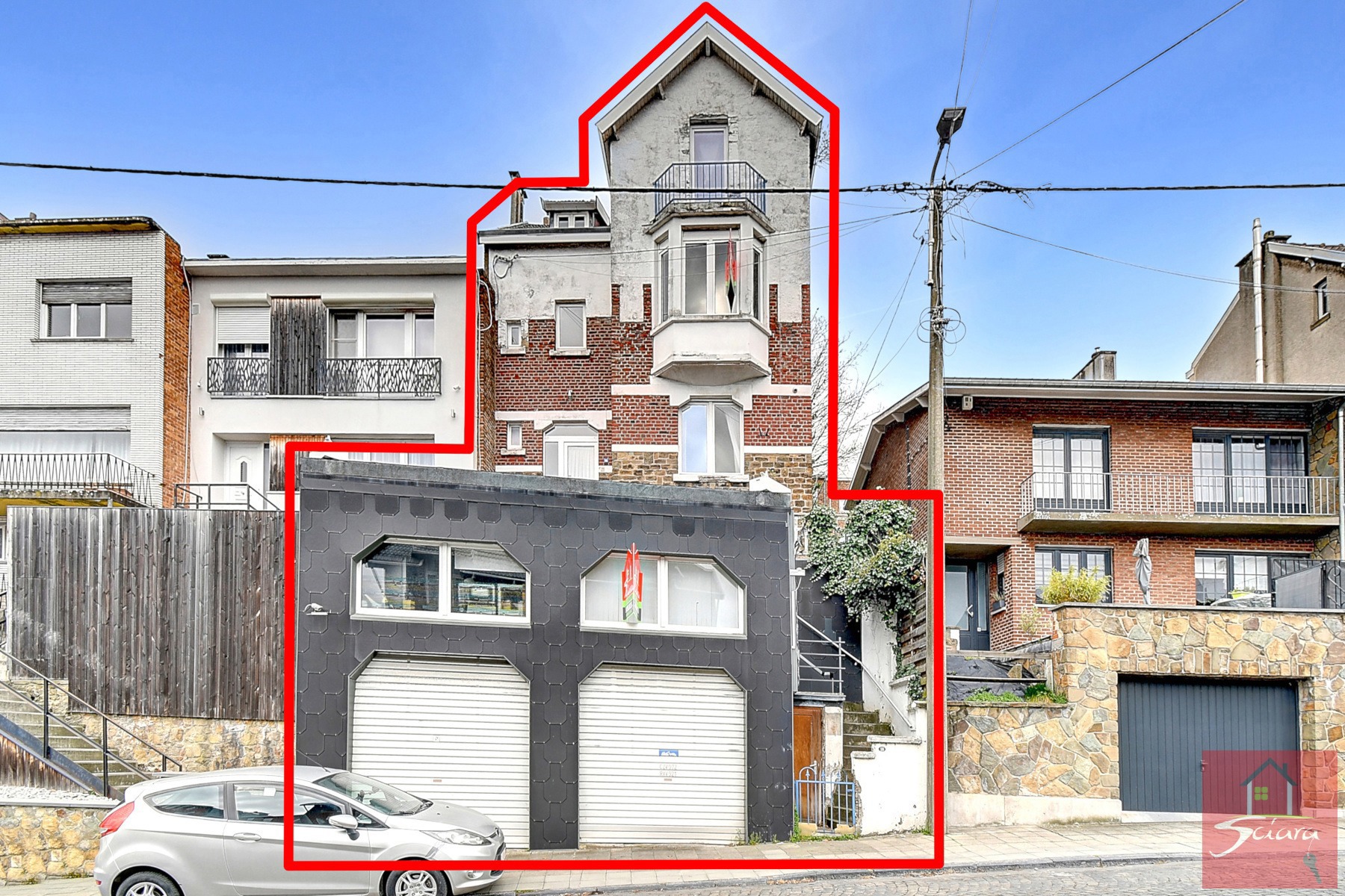 VISITE VIRTUELLE : https://my.matterport.com/show/?m=Etwsrzi87Px - L'agence immobilière SCIARA a le plaisir de vous présenter cette volumineuse maison d'habitation unifamiliale (actuellement divisée en 4 unités sans autorisation urbanistique). Composée au rez-de-chaussée de 2 garages + espace de stockage à l'étage (actuellement petit studio). L'immeuble se situe en retrait de la route et en hauteur accessible via une volée d'escalier et se compose d'un hall d'entrée avec un salon, salle-à-manger, salle-de-bain, cuisine et jardin (en pente) (actuellement appartement). A l'étage: hall de nuit avec 3 chambres (actuellement appartement) + accès à un comble aménagé en 2 chambres et une salle de bain (actuellement appartement à rénover à la suite d'un dégât des eaux (boiler) ). Technique: entièreté des châssis en double vitrage PVC, électricité disposant de 4 compteurs (à remettre aux normes), 4 compteurs d'eau et 4 compteurs gaz, L'immeuble est sain et sera à remettre aux goûts du jour. Situation prisée! A DECOUVRIR!!