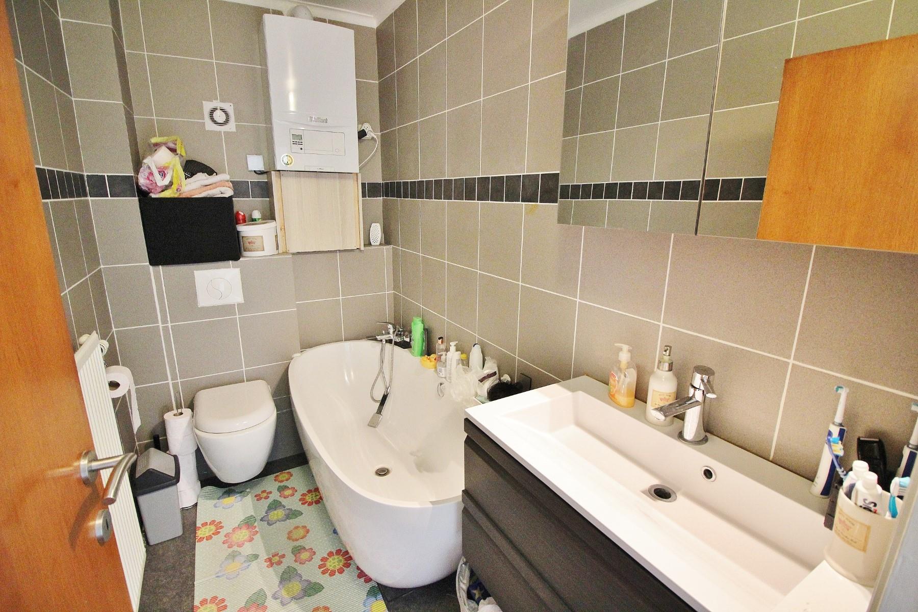 ***SOUS COMPROMIS DE VENTE*** Très bel appartement entièrement rénové situé 2ème étage d'une petite résidence, très proche de l'ensemble des commodités et axe autoroutiers. Composé d'un spacieux hall d'entrée, un très beau living/salle à manger, une cuisine équipée récente, une salle de bain (avec baignoire, évier, WC et une chaudière VAILLANT (murale gaz à condensation de 2ans), 2 spacieuses chambres. Châssis en PVC double vitrage, chauffage central au gaz, électricité CONFORME et toiture rénovée en 2016. Appartement entièrement rénové durant ces 3 dernières années. Possibilité de bénéficier des frais d'enregistrement réduits RC:676€ et aucune charges communes. Possibilité d'acquérir l'appartement meublé ! Certificat PEB datant de l'achat avant travaux ne reflétant pas la réalité du bien. Idéal comme 1er achat/investissement. A DECOUVRIR!!