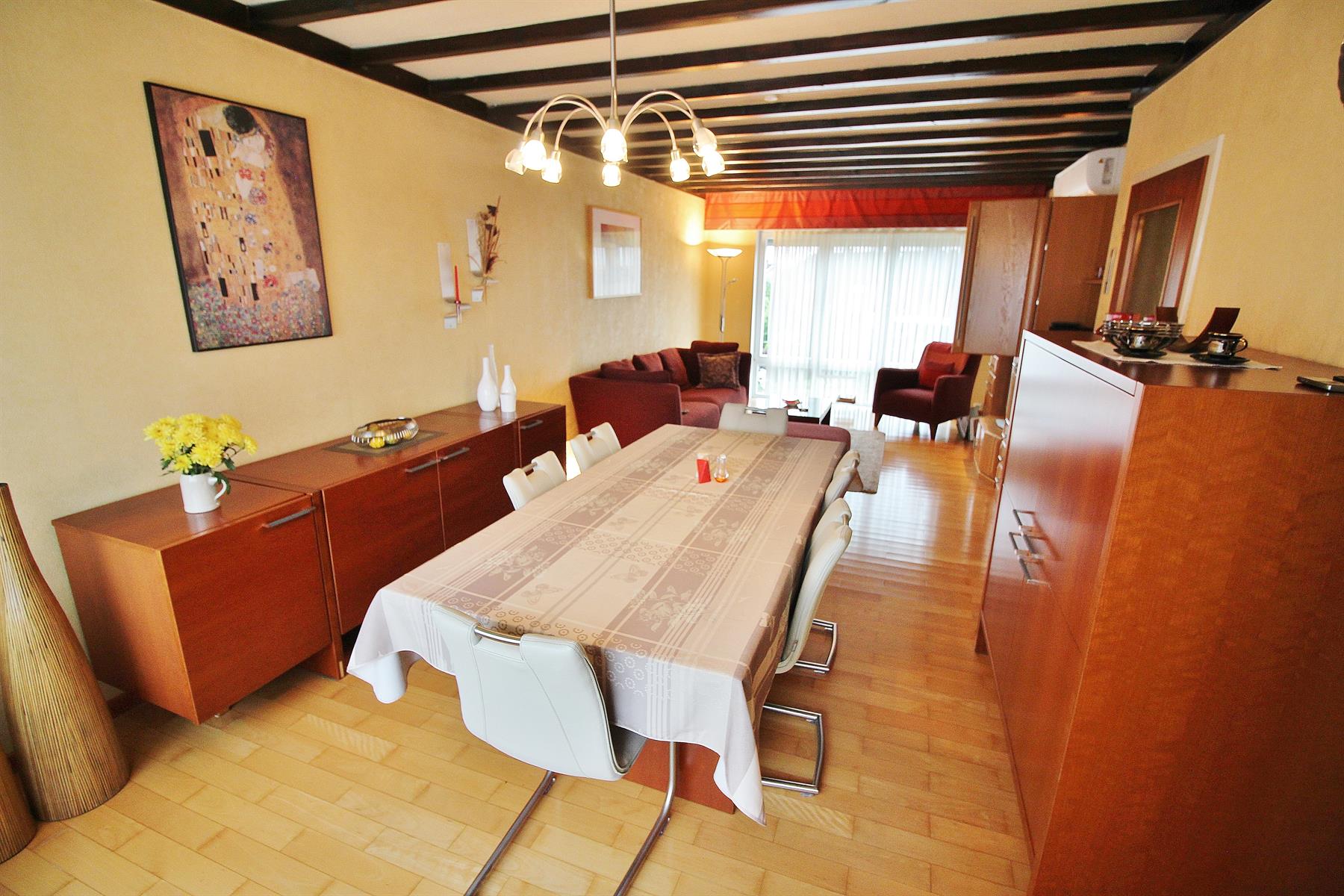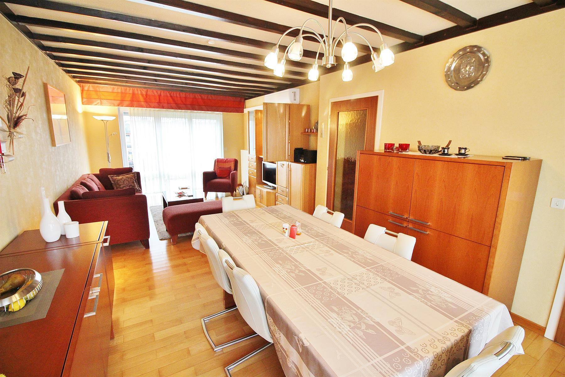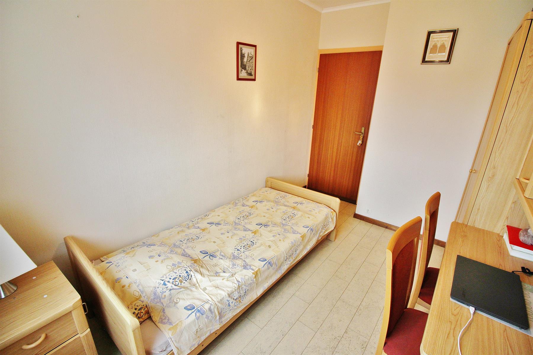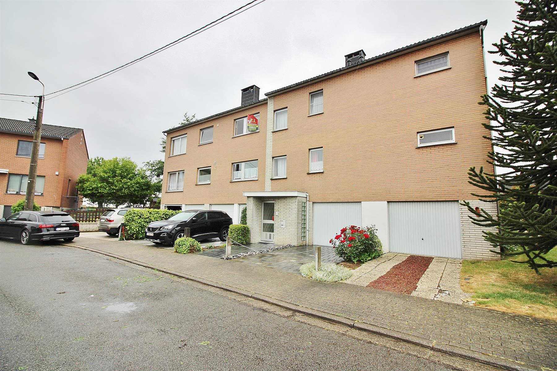 ***SOUS OPTION/SOUS COMPROMIS*** Magnifique appartement de 3 chambres avec 2 garages, 2 emplacements de parking et jardin sur l'arrière idéalement exposé. Situé au 2ème étage d'une résidence composée de 4 appartements et dans une rue très calme (cul-de-sac) tout en étant proche des commodités (zoning des Hauts-Sart, autoroutes, grand magasin). Composé d'un hall d'entrée avec WC, une cuisine équipée, un lumineux espace de vie (salon, salle-à-manger) et 3 chambres (ou 2 et un bureau) et une salle de bain avec évier, wc et baignoire (sera remplacé avant l'acte par une douche par les propriétaires). Au rez-de-chaussée: 2 garages (avec 2 portes sectionnelles dont une motorisée) avec un espace buanderie. Agréable jardin sur l'arrière à usage privatif très bien exposé. Charges communes: 10€/mois pour l'entretien des parties communes (pas de syndic, ni d'ascenseur). Tous les compteurs sont séparés (eau, gaz, électricité). Châssis simple vitrage aluminium en façade avant et PVC double vitrage à l'arrière (tous avec volets), chauffage central au gaz (chaudière Viessman à condensation), climatisation et électricité à remettre en conformité (mise en ordre rapide). Appartement libre à l'acte authentique, tenu dans un excellent état de propreté. A DECOUVRIR RAPIDEMENT!! 04/366.00.26