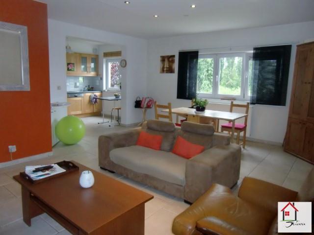 OPTION!! Agréable appartement situé dans un endroit calme et proche de toutes les commodités (axes autoroutiers, bus, écoles, commerces, etc.). Au 1er étage d'une résidence (construction +/-12 ans) composée de 3 appartements, il offre un hall d'entrée avec wc, un beau living (très lumineux) ouvert sur un espace cuisine équipée (four, taque à induction, hotte, lave-vaisselle) et buanderie (avec chaudière murale centrat au gaz), 2 chambres et une salle de bain (douche carrelée et évier). livré avec une cave et un emplacement de parking devant l'immeuble. tous les compteurs sont séparés (eau, gaz, électricité). Pas de charges communes. Possibilité de bénéficier des frais d'enregistrement réduits. A DECOUVRIR RAPIDEMENT!!!