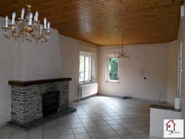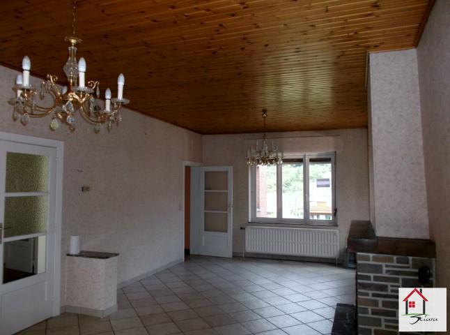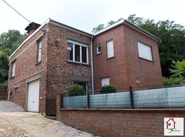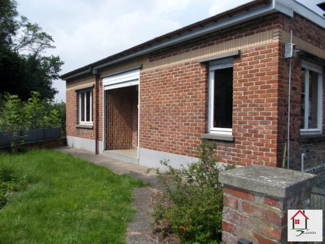SOUS COMPROMIS DE VENTE!! Bungalow 4 façades pour personnes aimant la tranquilité tout en étant proche de toutes les commodités. Entouré de verdure, il est composé d'un hall d'entrée, un grand living lumineux avec cassette à bois, une cuisine, accès terrasse - jardin et 2 chambres. Au niveau - 1; une salle de bain, un garage avec local chaufferie. Chauffage central au mazout.,toiture roofling (7 ans). Belle dépendance en face (garage ou atelier). Possibilité de bénéficier des frais d'enregistrement réduits à 6% (RC:741€). Accessibilité plus aisée par la RUE DE FLERON 348 à JUPILLE. A VISITER!!