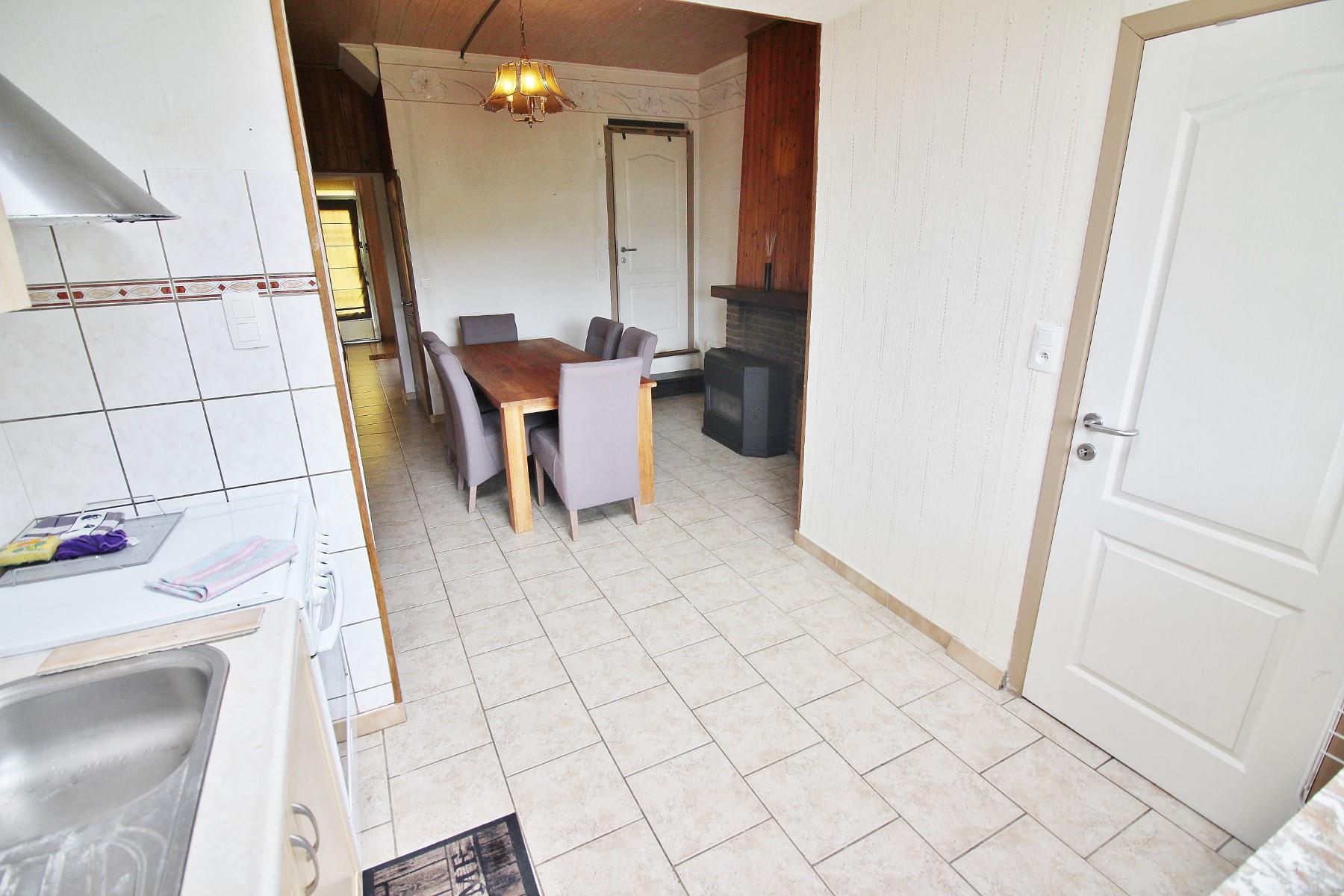 ***SOUS COMPROMIS DE VENTE*** Bonne maison d'habitation unifamiliale avec petit jardinet à l'avant située dans une rue calme proche de l'ensemble des commodités (bus, école, commerce). Composée au rez-de-chaussée d'un salon, une salle de douche (douche, WC, évier) une salle à manger ouverte sur une cuisine équipée meublée donnant sur la terrasse et un beau jardin (avec garage en fond de parcelle). Au premier étage : 2 chambres dont une donnant accès au 2ème étage: 2 chambres mansardées. -1 : cave saine avec raccordement machines à laver. Electricité CONFORME jusque 2042, châssis en simple vitrage alu avec volets, chauffage par convecteurs gaz, toit bon état. Possibilité de bénéficier des frais d'enregistrement réduits à 6% (RC:461€) 04/366.00.26