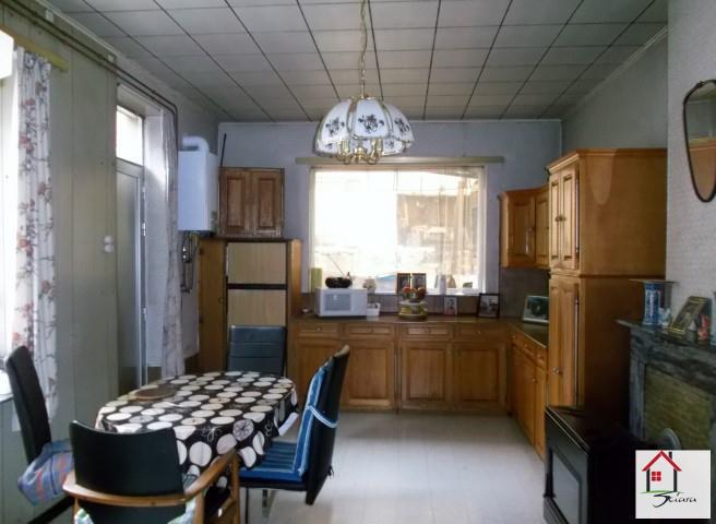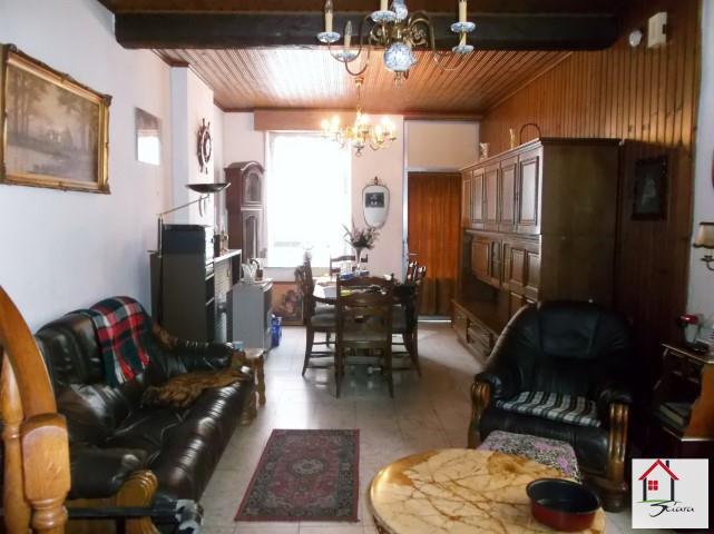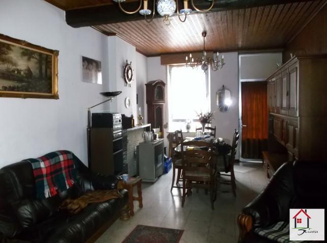 SOUS COMPROMIS DE VENTE!! Agréable maison 3 façades avec garage et jardin située dans un endroit calme et proche de toutes les commodités ( axes autoroutiers, commerces de proximité, écoles, etc.). Composée d'un grand living, une cuisine avec une salle de douche et wc. Au 1er étage: 2 chambres avec une possibilité d'en agencer 3 et un grand grenier aménageable en 1 chambre. Grand jardin calme et plat sur l'arrière avec terrasse et garage pour une voiture. Chauffage par convecteur au mazout. Très beau bâtiment à remettre au goût du jour. A DECOUVRIR!!