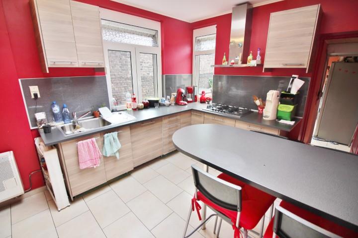 ***SOUS COMPROMIS DE VENTE*** Volumineuse maison d'habitation 4(5) chambres située proche de l'ensemble des commodités (bus, écoles, commerces, autoroutes). Composée comme suit: Rez : Hall d'entrée, très grand salon ouvert sur la salle-à-manger, très belle cuisine équipée, un WC indépendant, une buanderie et une terrasse donnant accès à un grand jardin bien exposé avec remise. Au 1er étage: hall de nuit donnant sur 2 chambres et une salle de bain (douche, WC, évier). Au 2eme étage: hall de nuit donnant sur 3 chambres (2 communicantes). Au -1: 2 caves avec compteurs. Bâtiment très sain, idéal pour une famille nombreuse. Toit en très bon état (2011), électricité CONFORME jusque 2023, châssis en double vitrage PVC avec volets électriques et chauffage convecteur gaz. Possibilité de bénéficier des frais d'enregistrement réduits à 6% (RC:425€). PETIT CONSEIL : A VISITER AU PLUS VITE. Infos et visites : 04/366.00.26