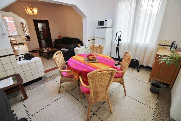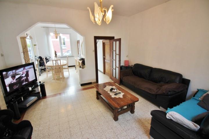 ***SOUS COMPROMIS DE VENTE*** Bonne maison d'habitation 3 façades avec passage latéral située proche de toutes les facilités (écoles, commerces, axes autoroutiers). Composée au rez-de-chaussée d'un hall d'entrée, lumineux salon/salle à manger ouvert sur une cuisine meublée. Au 1er étage: hall de nuit donnant sur 2 chambres et une salle de douche (douche, WC, évier). Au -1: 2 buanderie, 1 WC, et une belle pièce utilisée en tant que chambre donnant accès à un grand et beau jardin plat bien exposé. Châssis récents en double vitrage PVC avec volets, chauffage par foyer charbon+bois, toit en bon état. Possibilité de bénéficier des frais d'enregistrement réduits à 6% (RC:514€). A VOIR AU PLUS VITE