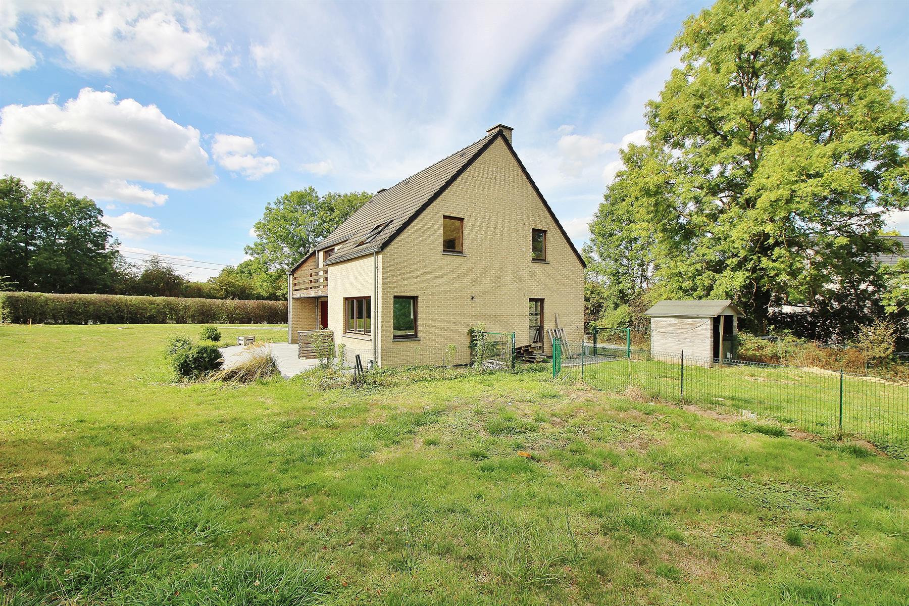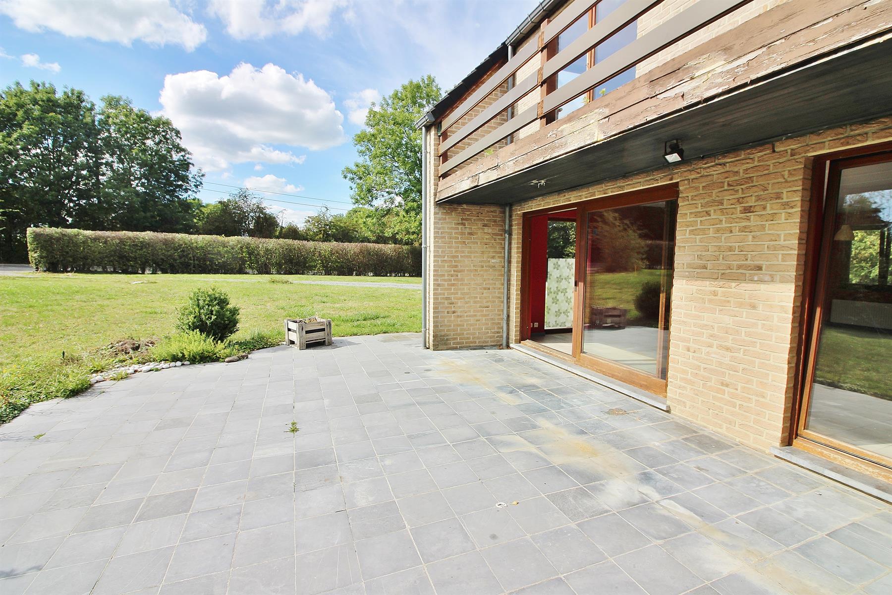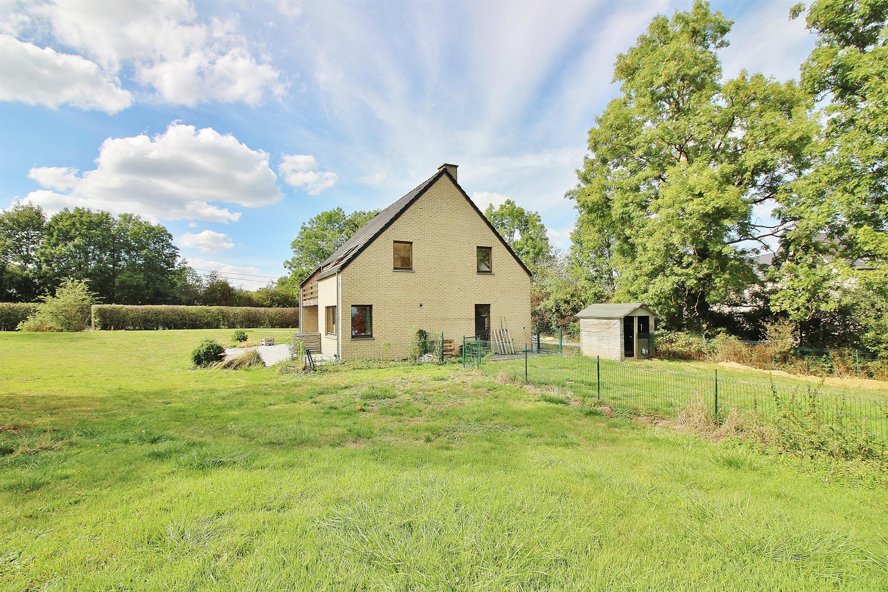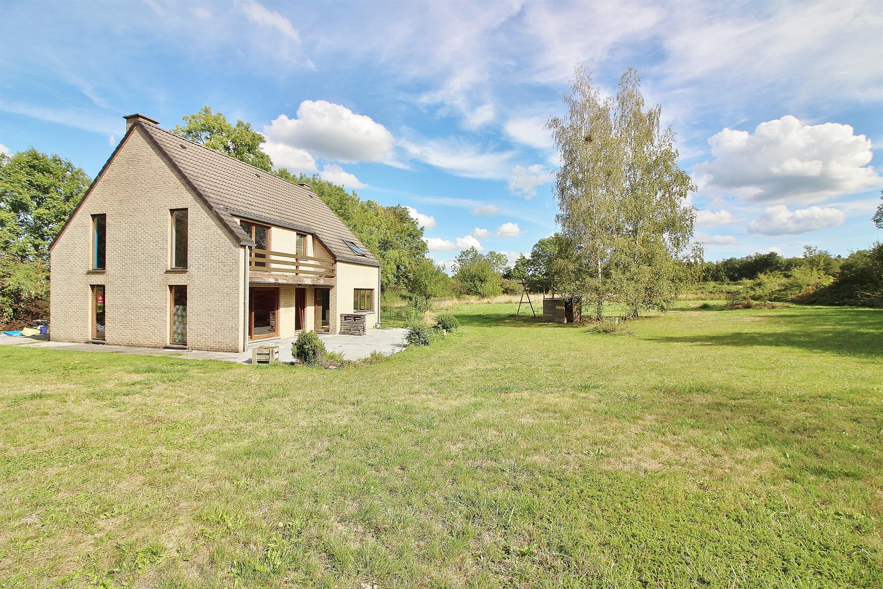 ***SOUS OPTION/VENDU*** Magnifique maison 4 façades de 1997 (travaux à prévoir) sur une parcelle de +- 3100m² (terrain de 5396m² divisé, voir plan sur photos) avec un splendide jardin bien exposé située dans une rue calme tout en restant proche de l'ensemble des commodités. Composée au rez-de-chaussée d'un grand hall d'entrée (avec WC indépendant), d'un spacieux espace de vie (donnant sur une terrasse exposée plein sud) ouvert sur une grande cuisine équipée et une buanderie (avec espace machines et chaudière). Au 1er étage: hall de nuit donnant sur 4 grandes chambres (dont une avec terrasse), une salle de bain et une salle de douche. D'un point de vue technique: l'immeuble est équipé de châssis en double vitrage en bois, électricité bi-horaire et d'un système de chauffage central au mazout. (Citerne 2000L). A DÉCOUVRIR RAPIDEMENT.