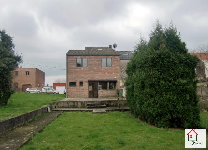 OPTION!! Excellente maison d'habitation 3 façades dans un très bon état située dans un endroit très calme tout en étant proche des commodités (axes autoroutiers, commerces, etc.) Composée au rez-de-chaussée d'un grand hall d'entrée, un grand séjour-living, une cuisine équipée ouverte sur le séjour avec accès terrasse et jardin et salle de bain. Au 1er étage: un hall de nuit avec une mezzanine (possibilité d'un bureau) et 4 chambres avec un grenier aménageable en un grande chambre (ou 2 petites). Bâtiment très sain, idéale pour une grande famille ou personnes désireuses de volume. Châssis en double vitrage bois, chauffage central au gaz. A DECOUVRIR!!