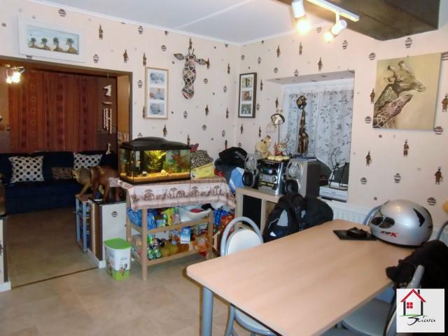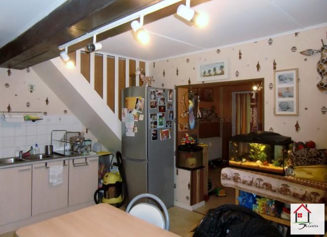 OPTION!! Bonne maison d'habitation en très bon état idéalement située proche des grands axes autoroutiers. Composée au rez-de-chaussée d'un living et d'une cuisine équipée et salle de bains (douche). Au 1er étage: 2 chambres et un grenier aménageable en une chambre très rapidement. Possibilité d'achat de garage (prix à convenir) à 15 m et possibilité d'achat d'une parcelle de jardin (prix à convenir). Châssis en Pvc double vitrage. Chauffage central au mazout (prévoir chaudière). A SAISIR!!!