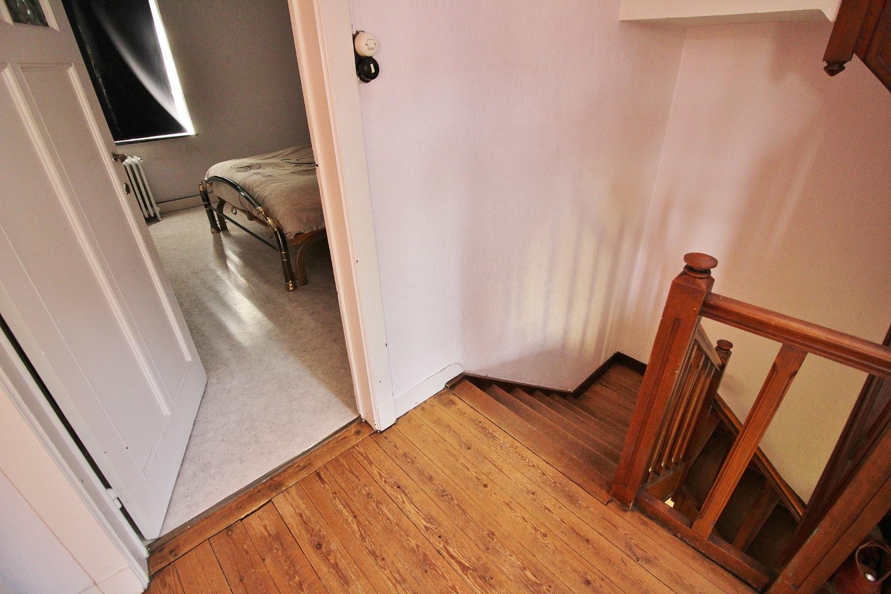 ***SOUS COMPROMIS DE VENTE*** Charmante maison 3 façades avec passage latéral située dans une des rues les plus prisées de Huy et proche de l'ensemble des commodités et grands axes. Composée au rez-de-chaussée d'un hall d'entrée (avec WC indépendant) donnant sur un spacieux salon, une salle-à-manger, une cuisine meublée et une buanderie avec espace machines donnant accès à un très beau jardin plat. Au 1er étage: hall de nuit avec 3 chambres, une salle de bain (baignoire, evier, WC). 2ème étage : 2 grandes chambres et un grenier aménageable (poss 6ème chambre). Au niveau -1 : 3 caves avec compteur gaz et eau et chaudière gaz (+-25ans). Emplacement de parking pour 3 voitures en enfilade sur l'extérieur. Electricité à remettre en conformité (tableau électrique récent), châssis en simple vitrage bois, chauffage central au gaz, toiture en très bon état. Immeuble très sain avec beaucoup de potentiel et de belles perspectives d'évolution. Actuellement louée 800€/mois et libre fin septembre. RC:889€. A VOIR AU PLUS VITE!